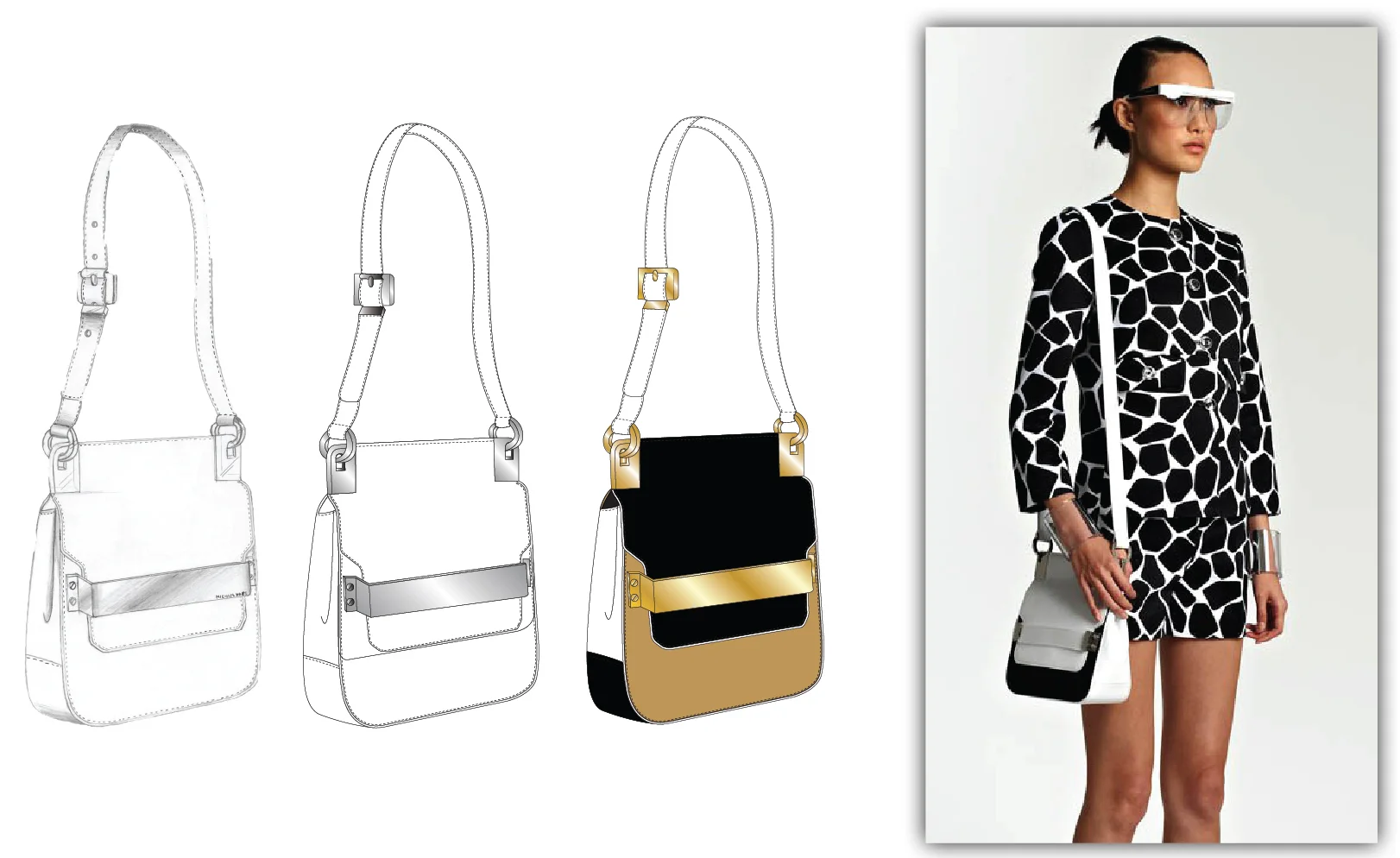 Sketch and Illustrator flats are reflective of the design process for the Resort 2014 Collection including color + shape research, new material sourcing and all research involved in creating this product. All other sketches are reflective of research and ideations for the Spring 2014 Collection.